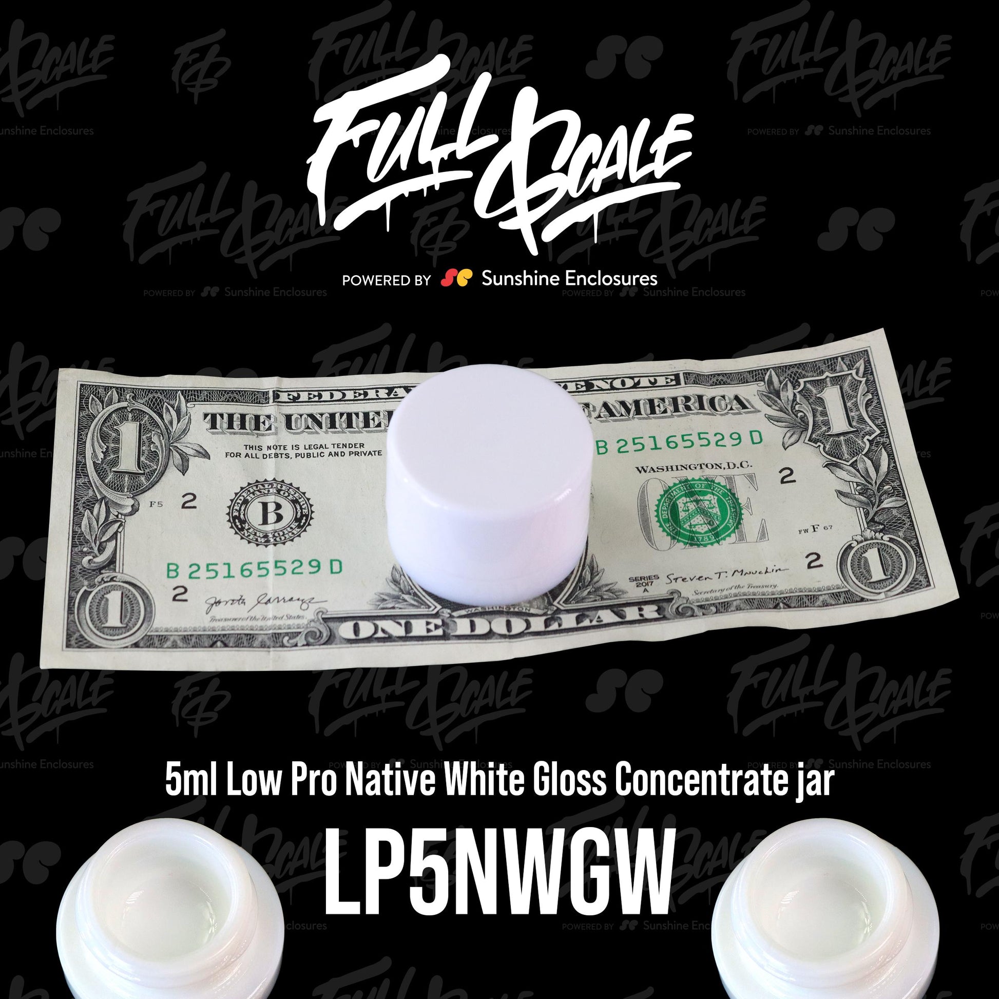 LP5NWGW - Glass:SE - Low Profile Concentrate Jar - 5ml - Native White Glass - Glossy White Child Resistant Smooth Lid included - 504/Case
